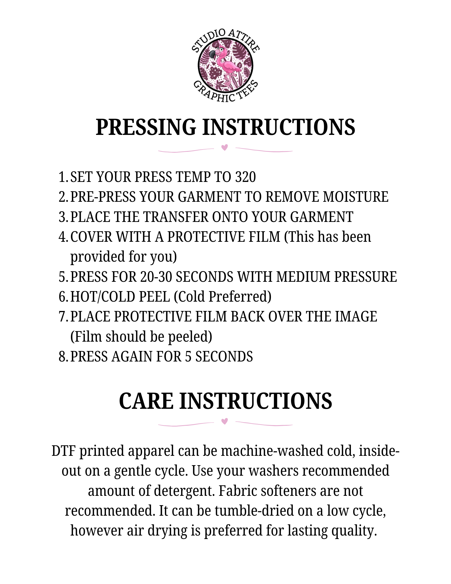 By following these care instructions, your custom apparel will stay bold and beautiful wear after wear!
